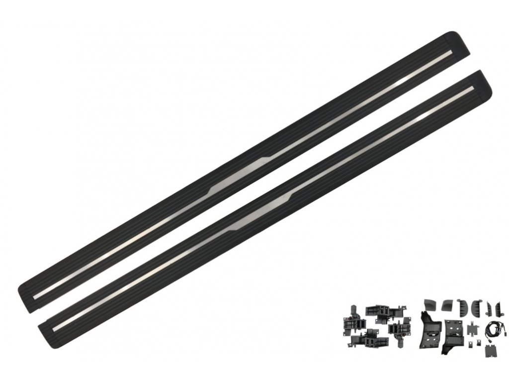 Running boards, side steps made of high-quality stainless steel, aluminum, and PVC.Full electric running boards equipped with control modules and motors.