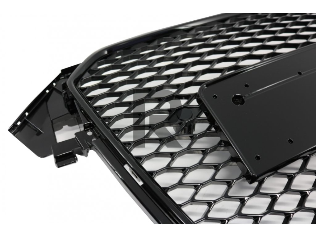 Predná mriežka bez emblému vhodná pre Audi A4 B8 Facelift (2012-2015) RS Design Honeycomb Piano Black s krytmi parkovacích hodín.