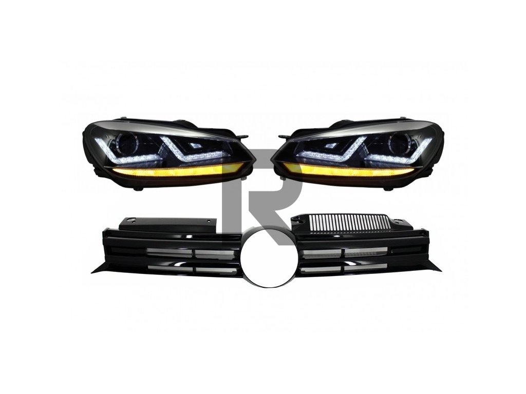 Predná mriežka vhodná pre VW Golf VI (2008-2012) s xenónovými svetlometmi Osram, chrómovými LED dynamickými sekvenčnými smerovými svetlami R20.