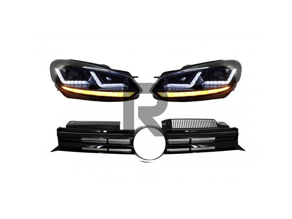 Predná mriežka vhodná pre VW Golf VI (2008-2012) s xenónovými svetlometmi Osram, LED dynamickými sekvenčnými smerovými svetlami R20 Design