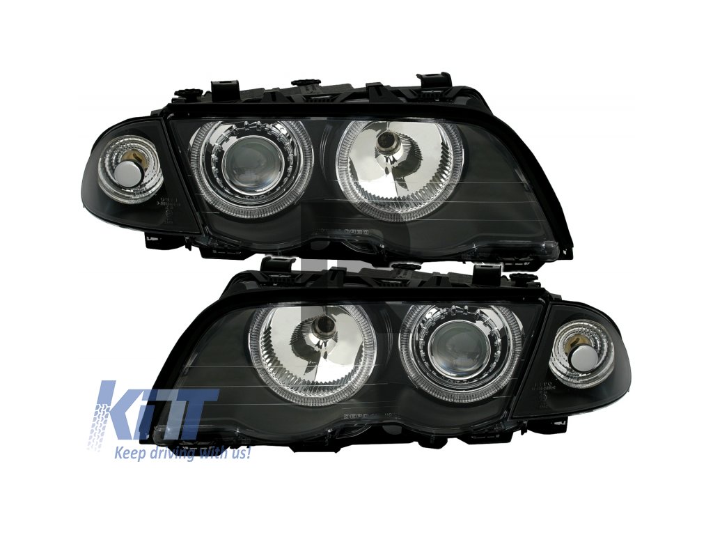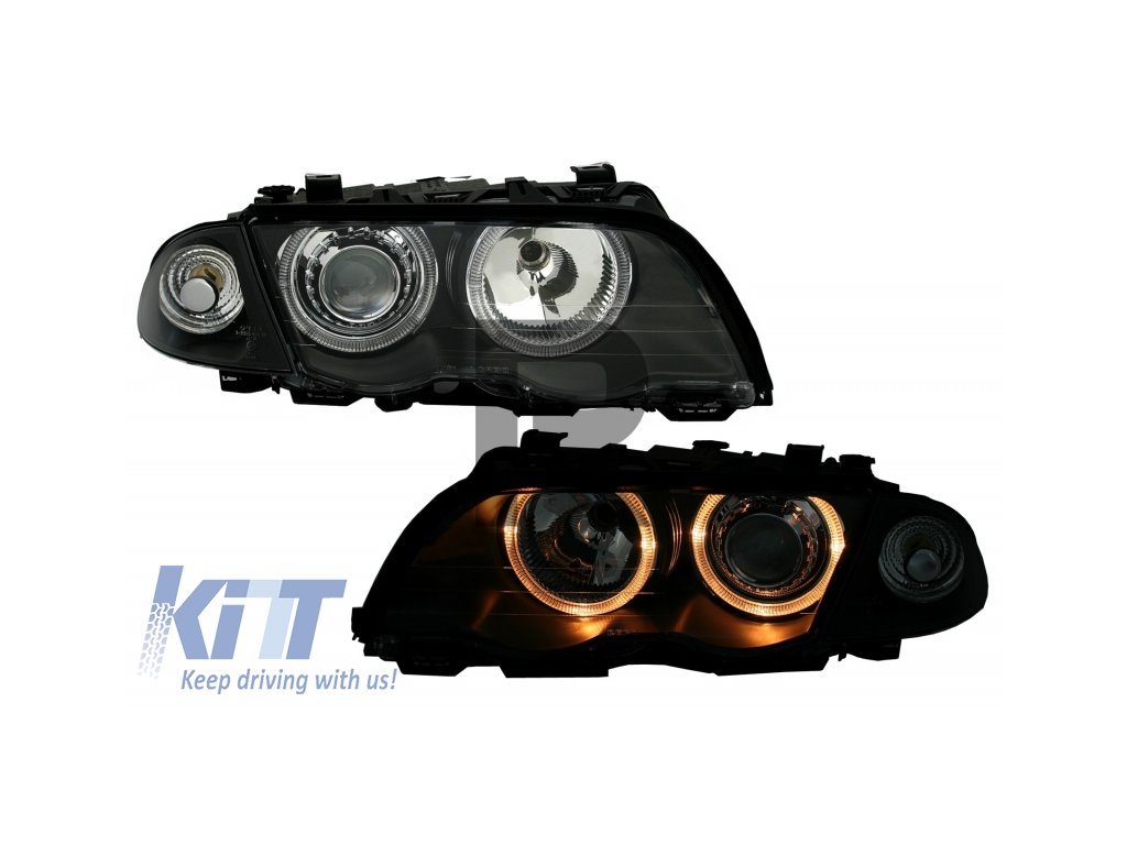 Predné svetlomety vhodné pre BMW radu 3 E46 Limousine Touring (05.1998-08.2001) Angel Eyes čierne