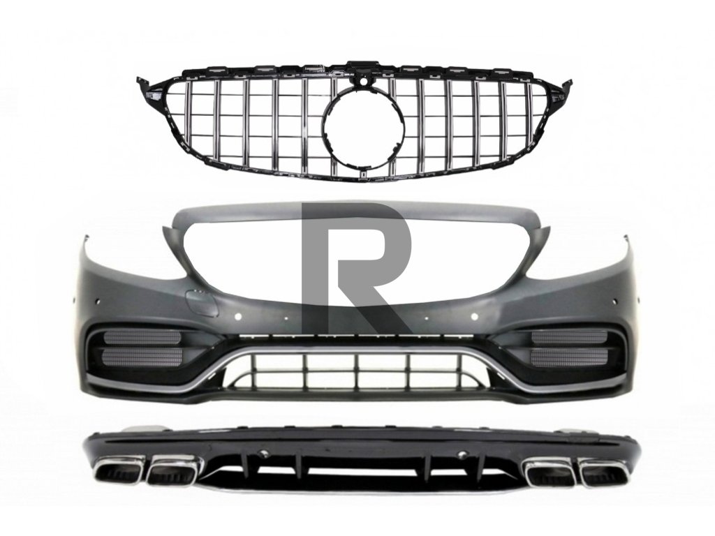 Predný nárazník a mriežka s difúzorom a koncovkami vhodný pre Mercedes triedy C W205 S205 AMG Sport Line (2014-2020) C63S Design
