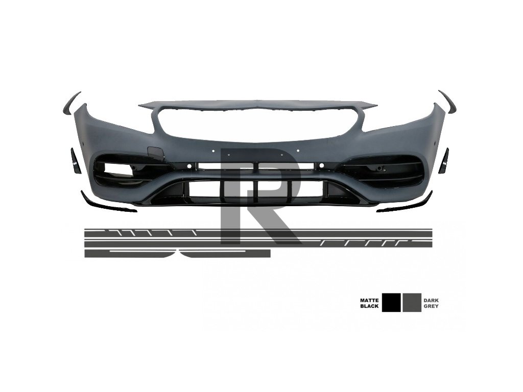 Predný nárazník s bočnými polepmi v tmavosivej farbe vhodný pre Mercedes triedy A W176 (2012-2018) Facelift A45 Design
