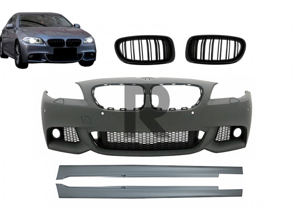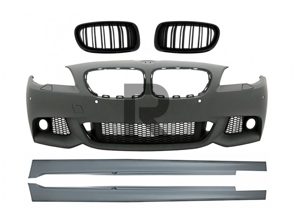 Predný nárazník s bočnými prahmi a stredovými mriežkami, vhodný pre BMW radu 5 F10 F11 Non LCI (07.2010-2013) Sedan Touring M-Technik Design