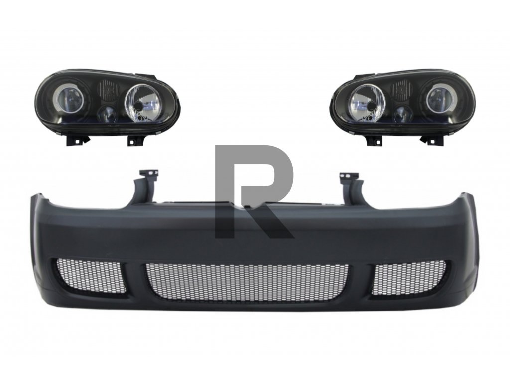 Predný nárazník s čiernymi svetlometmi vhodný pre VW Golf IV 4 MK4 (10.1997-09.2003) R32 Look
