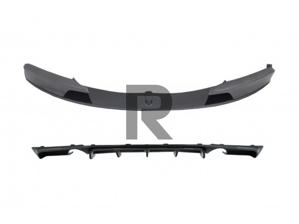 Predný nárazník s difúzorom, dvojitým vývodom pre jednoduchý výfuk, vhodný pre BMW radu 3 F30 F31 (2011-up), M-Performance Design, karbónová fólia.