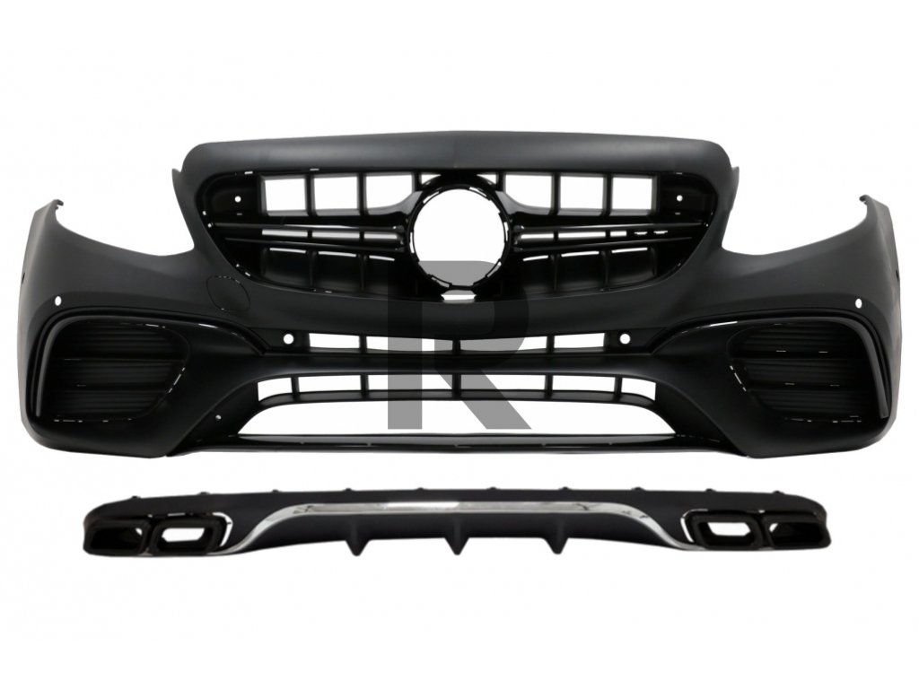 Predný nárazník s difúzorom a koncovkami tlmiča výfuku čierny, vhodný pre Mercedes triedy E W213 S213 Standard (2016-2019) E63 Design