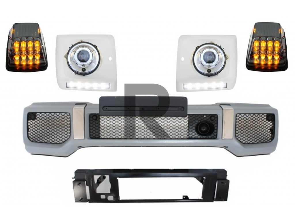 Predný nárazník s krytmi svetlometov LED denné svietenie vhodné pre Mercedes G Class W463 (1989-up) Chrómové svetlomety a smerovky dizajn G65
