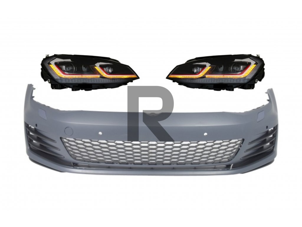 Predný nárazník s LED svetlometmi, sekvenčnými dynamickými smerovkami, červený, vhodný pre VW Golf VII 7 5G (2013-2017) Facelift G7.5 GTI Look