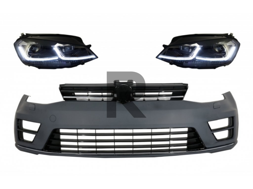 Predný nárazník s LED svetlometmi, sekvenčnými dynamickými smerovými svetlami, vhodný pre VW Golf VII 7 (2013-2017) s vzhľadom R-Line