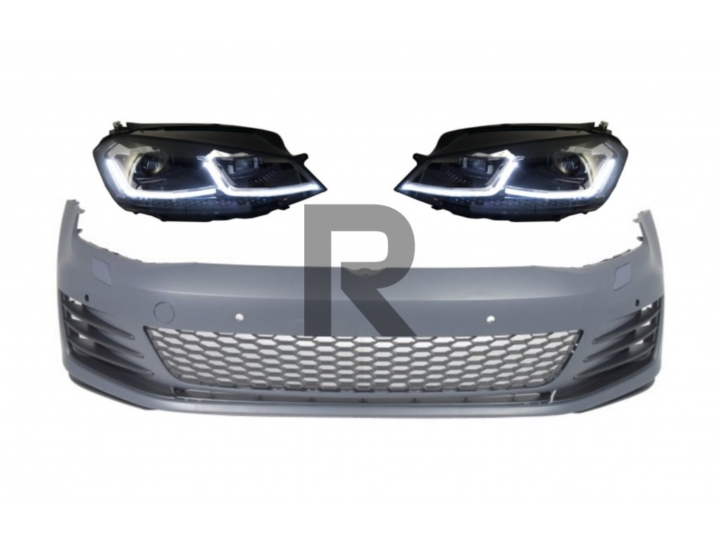 Predný nárazník s LED svetlometmi, sekvenčnými dynamickými smerovými svetlami, vhodný pre VW Golf VII 7 5G (2013-2017) GTI Look