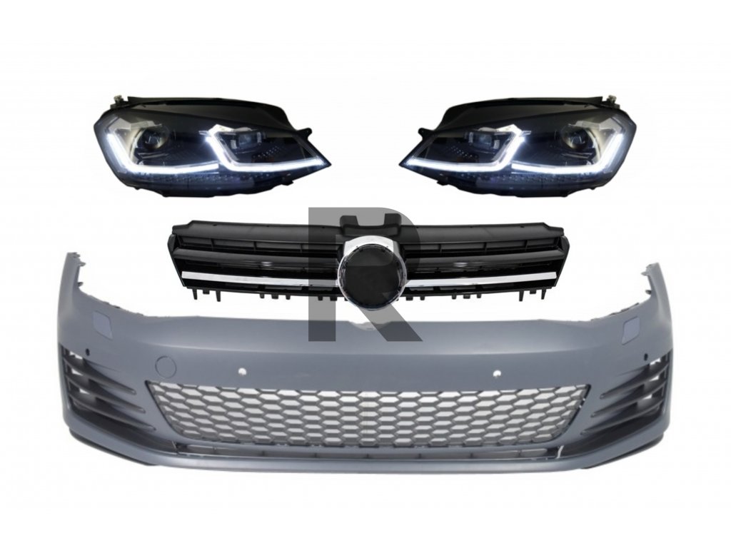 Predný nárazník s LED svetlometmi, sekvenčnými dynamickými smerovými svetlami a chrómovými vložkami do mriežky, vhodný pre VW Golf VII 7 5G (2013-2017) GTI Look