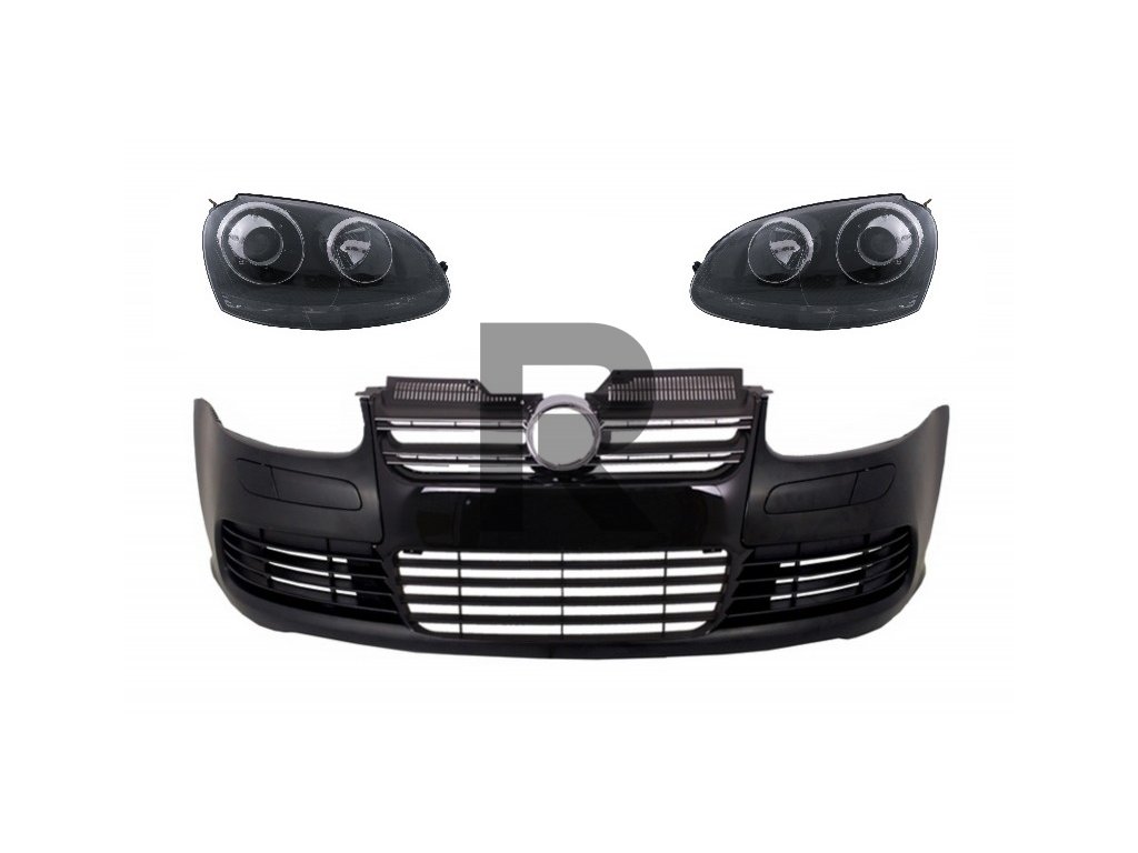 Predný nárazník so svetlometmi vhodný pre VW Golf V 5 (2003-2007) Jetta (2005-2010) GTI R32 Look Black Edition