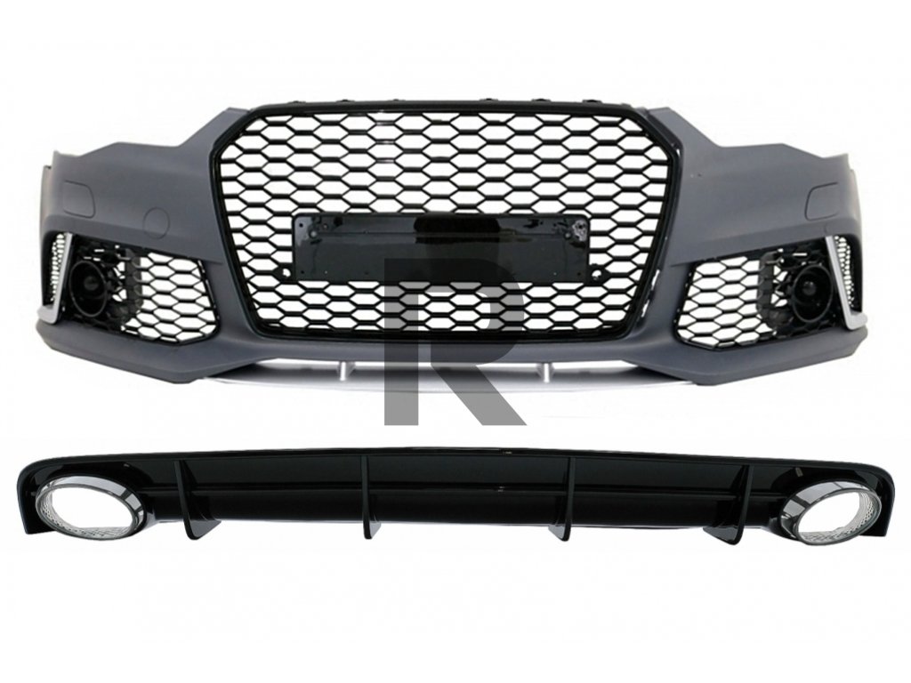 Predný nárazník vhodný pre Audi A6 4G Facelift (2015-2018) so zadným difúzorom a koncovkami výfuku, iba pre RS6 Design, nárazník S-Line.
