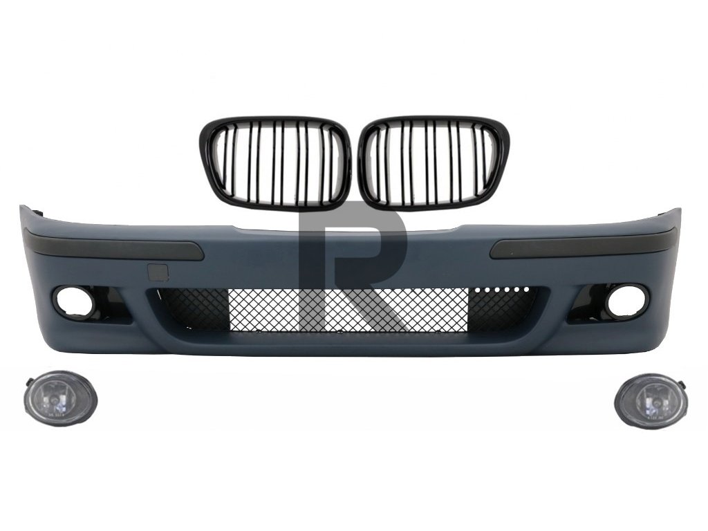 Predný nárazník vhodný pre BMW radu 5 E39 (1995-2003) s hmlovými svetlami a centrálnymi mriežkami obličiek s dvojitým pruhom v štýle M5.