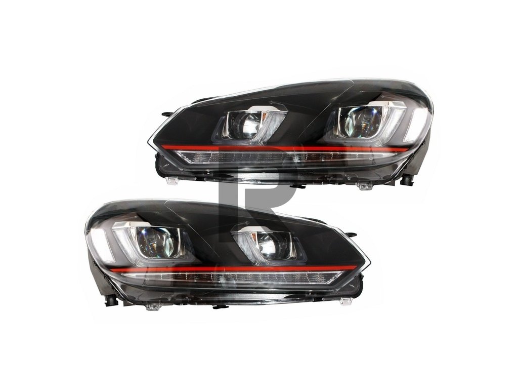Predný nárazník vhodný pre VW Golf VI 6 (2008-2013) R20 Look so svetlometmi 3D LED denné svietenie U-Design LED smerovky červený pruh GTI