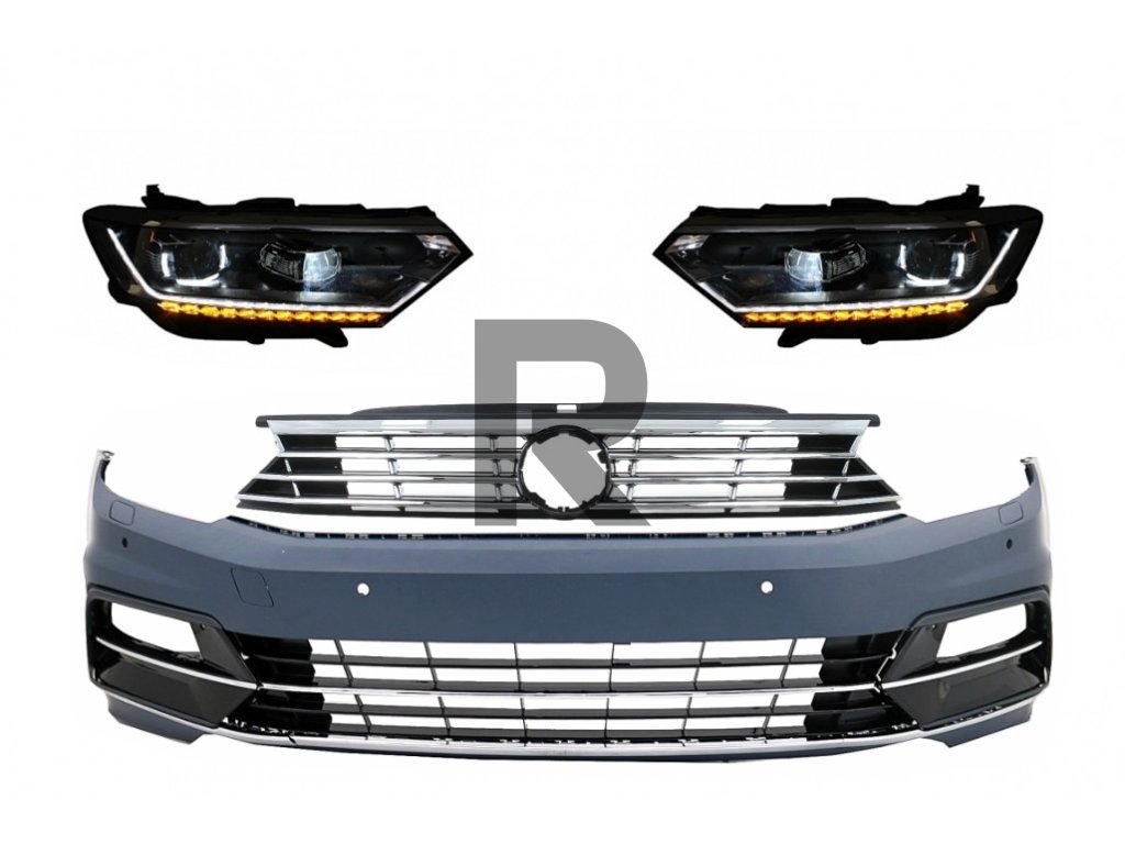 Predný nárazník vhodný pre VW Passat B8 3G (2015-2018) R-Line s LED maticovými svetlometmi so sekvenčnými dynamickými smerovými svetlami