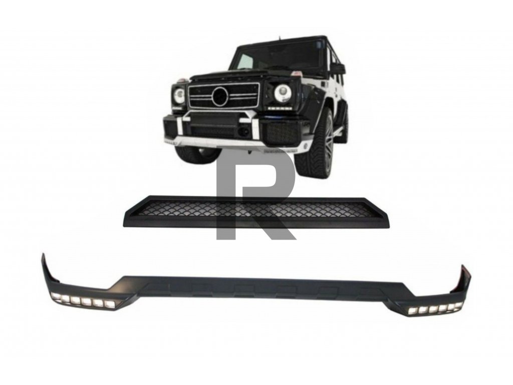 Predný spojler pre nárazník s LED dennými svetelnými lúčmi a horná lemová hrana vhodné pre Mercedes Trieda G W463 (1989-2017)