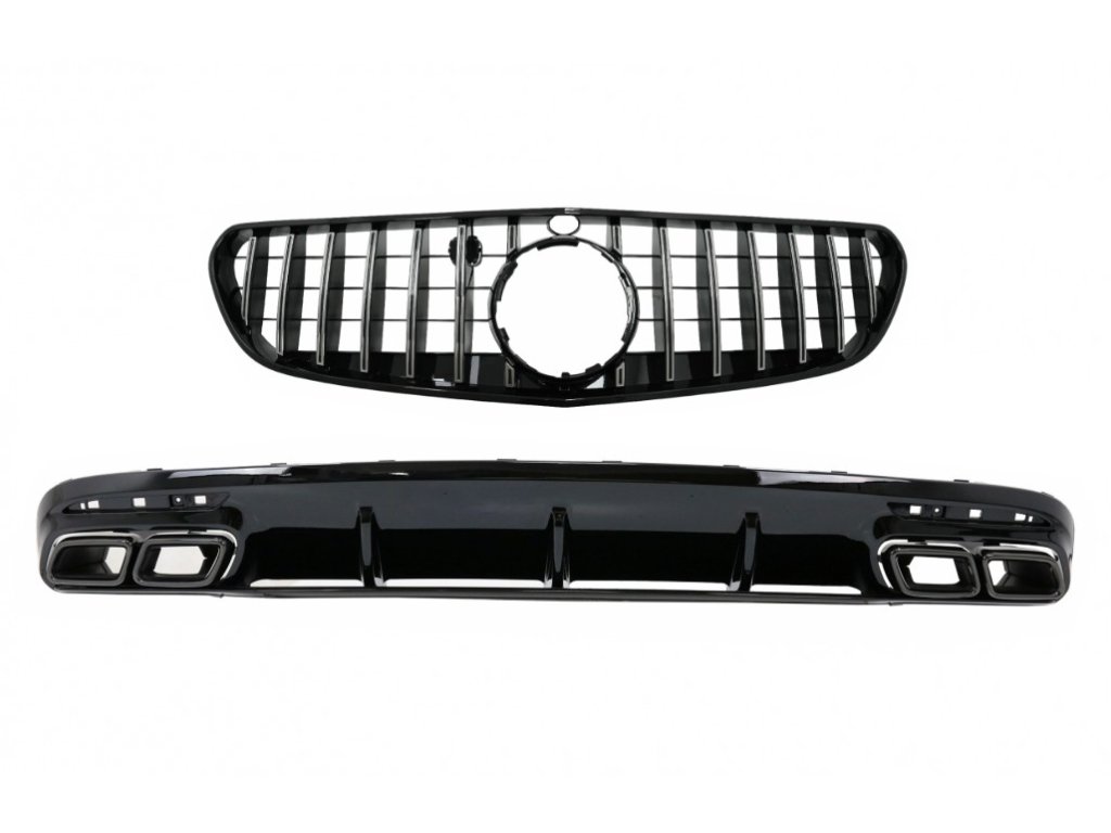 Rear Bumper Air Diffuser with Black Muffler Tips suitable for Mercedes S-Class C217 Coupe (2018-2020) and Central Grille S63 Facelift Design