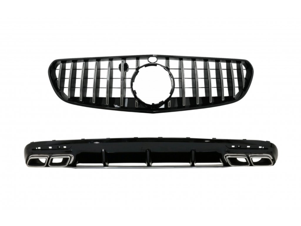 Rear Bumper Air Diffuser with Chrome Muffler Tips and Central Grille suitable for Mercedes S-Class C217 Coupe (2018-2020) S63 GT-R Design