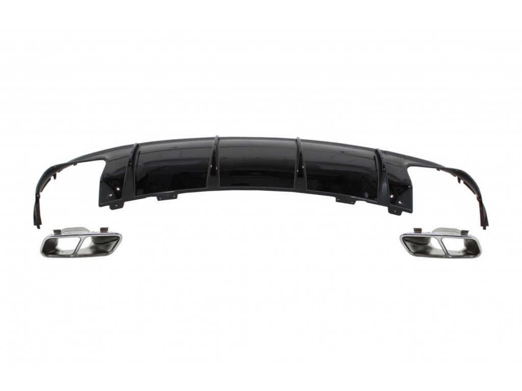 Rear Bumper Air Diffuser with Ehaust Muffler Tips suitable for Mercedes CLA W117 X117 Shooting Brake (2013-2018) Facelift CLA45 Look