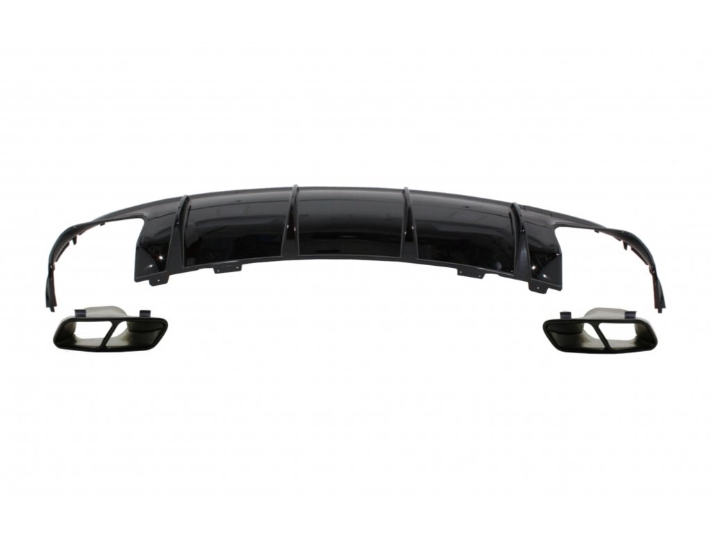 Rear Bumper Air Diffuser with Exhaust Muffler Tips suitable for Mercedes CLA W117 X117 Shooting Brake (2013-2018) Facelift CLA45 Look Black