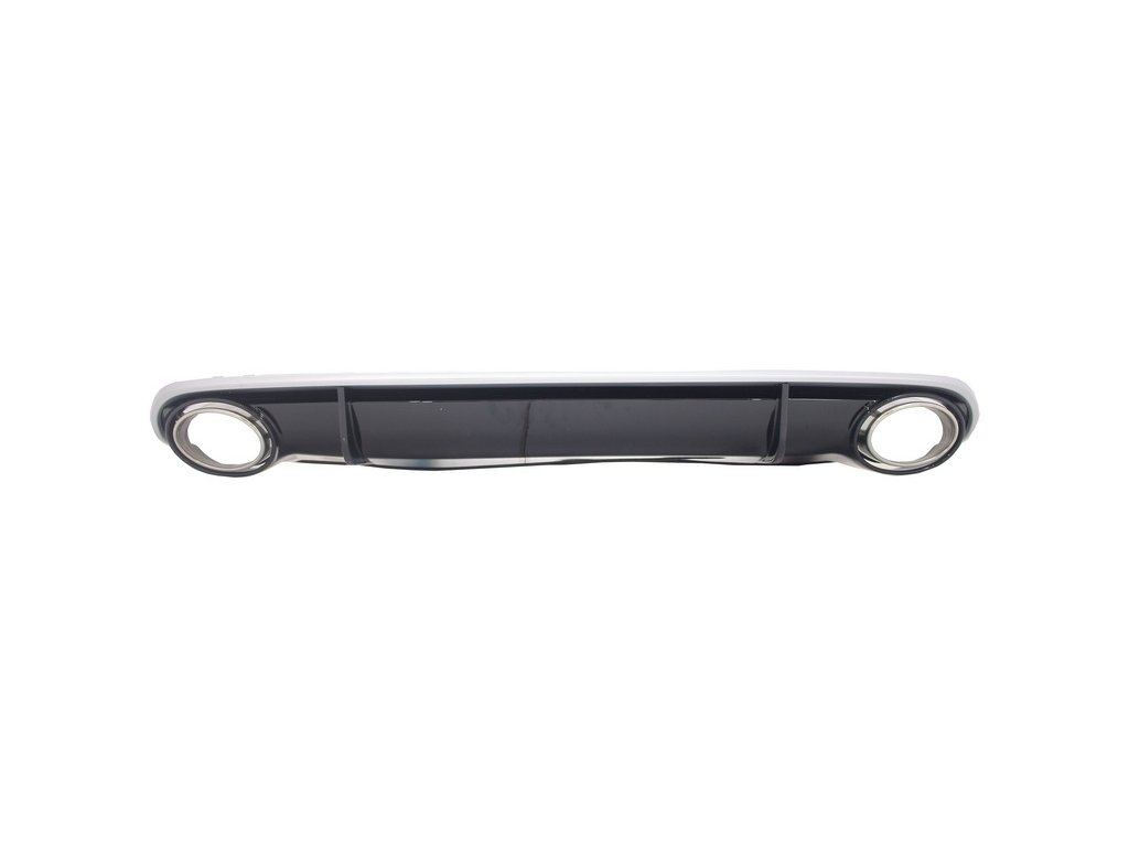 Rear Bumper Air Diffuser RS4 Design crafted in high quality ABS plastic, equipped with double exhaust outlets with 304 stainless steel muffler tips.Finish: Piano Black/ Brushed Aluminum