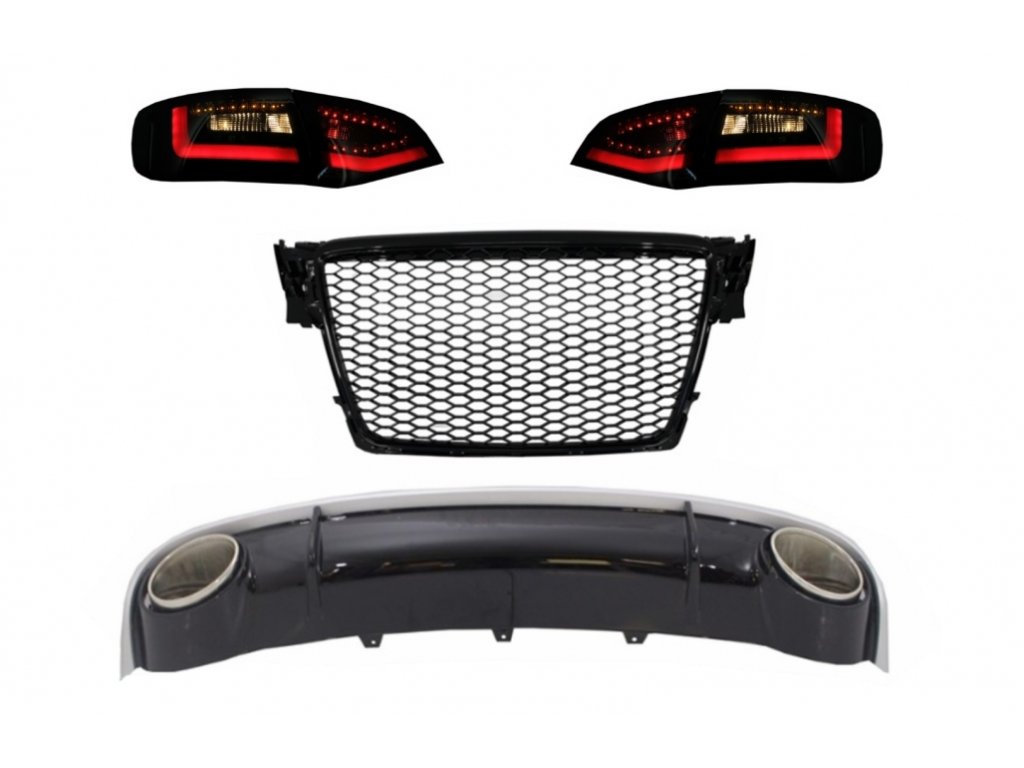 Rear Bumper Diffuser & Exhaust Tips with Central Grille and LED Taillights suitable for AUDI A4 B8 Avant Pre Facelift (2007-2011)