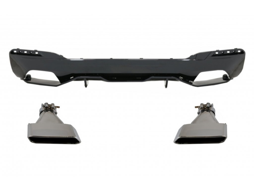 Rear Bumper Diffuser suitable for BMW 5 Series G30 G31 Limousine Touring (2017-up) with Exhaust Muffler Tips M Performance Design Piano Black