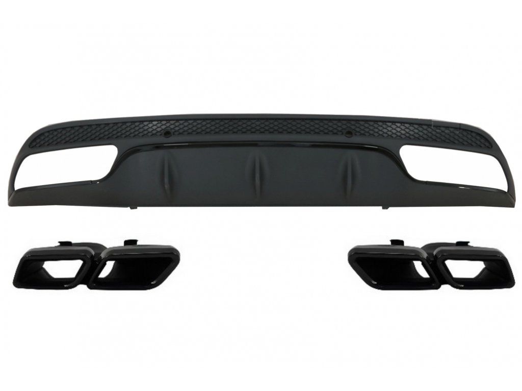 Rear Bumper Diffuser suitable for Mercedes C-Class W205 S205 (2014-2020) with Exhaust Muffler Tips C63 Design Only for Sport Pack Black Edition