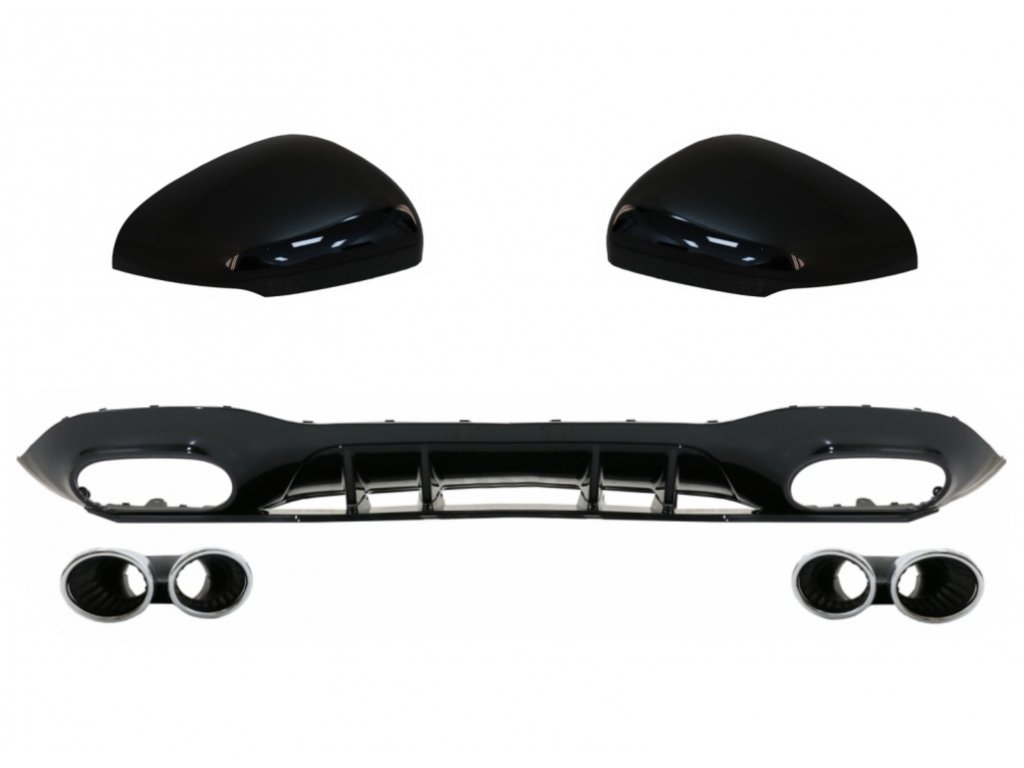 Rear Bumper Diffuser with Chrome Exhaust and Mirror Covers suitable for Mercedes A-Class W177 Hatchback (05.2018-2022)