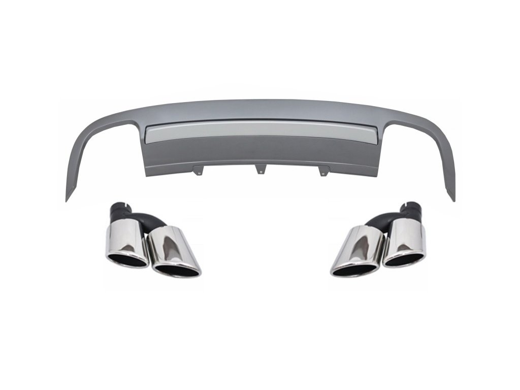Rear Bumper Diffuser with Exhaust Muffler Tips suitable for Audi A5 8T Sportback Standard Non Facelift (2007-2011) S5 Design