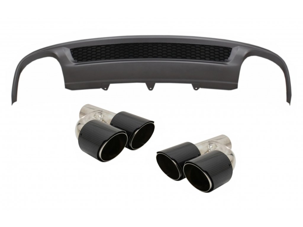 Rear Bumper Valance Air Diffuser suitable for Audi A4 B8 Facelift Limousine Avant (2012-2015) with Carbon Fiber Exhaust Muffler Tips Polished S-Line Design only Standard Bumper