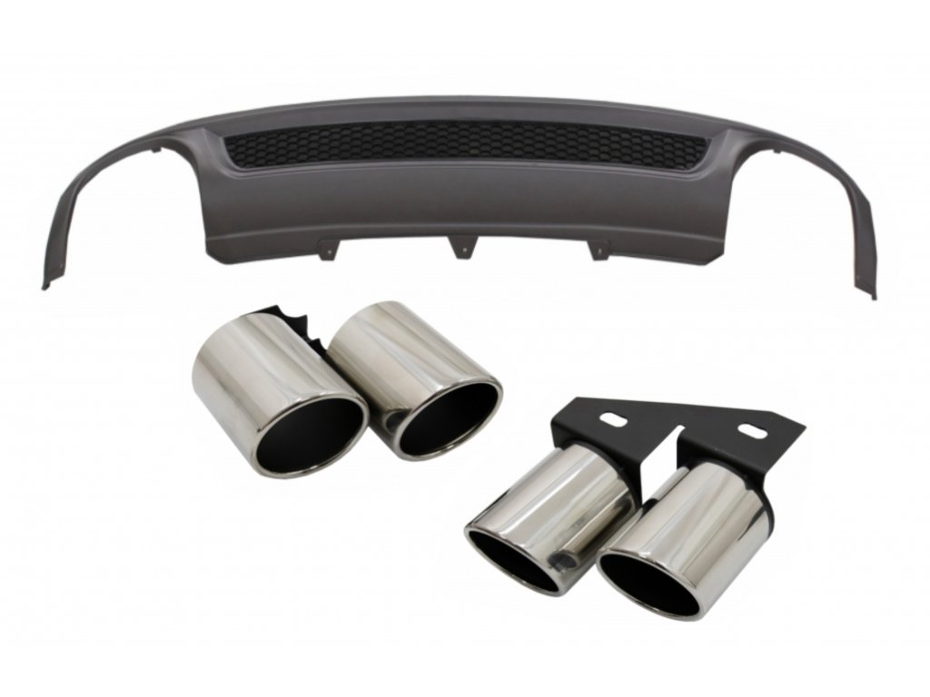 These exhaust tips are meant to complete the S4 look of your A4 together with the double exhaust rear bumper diffuser. You will get the quad S4 look on your A4 without changing the car evacuation route.Suitable for