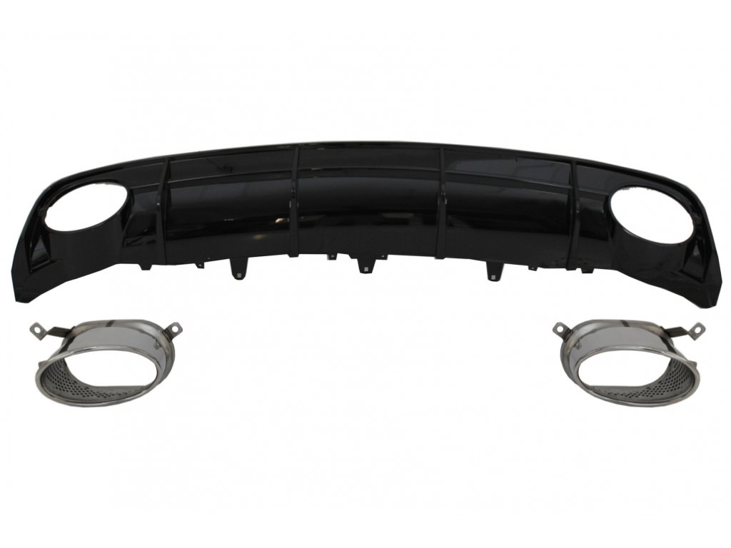 Rear Bumper Air Diffuser crafted in high-quality ABS plastic, equipped with double exhaust outlets with 304 stainless steel muffler tips.Muffler Tips crafted in high-quality stainless steel