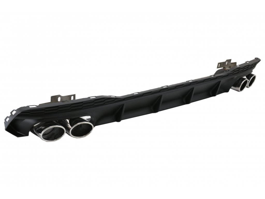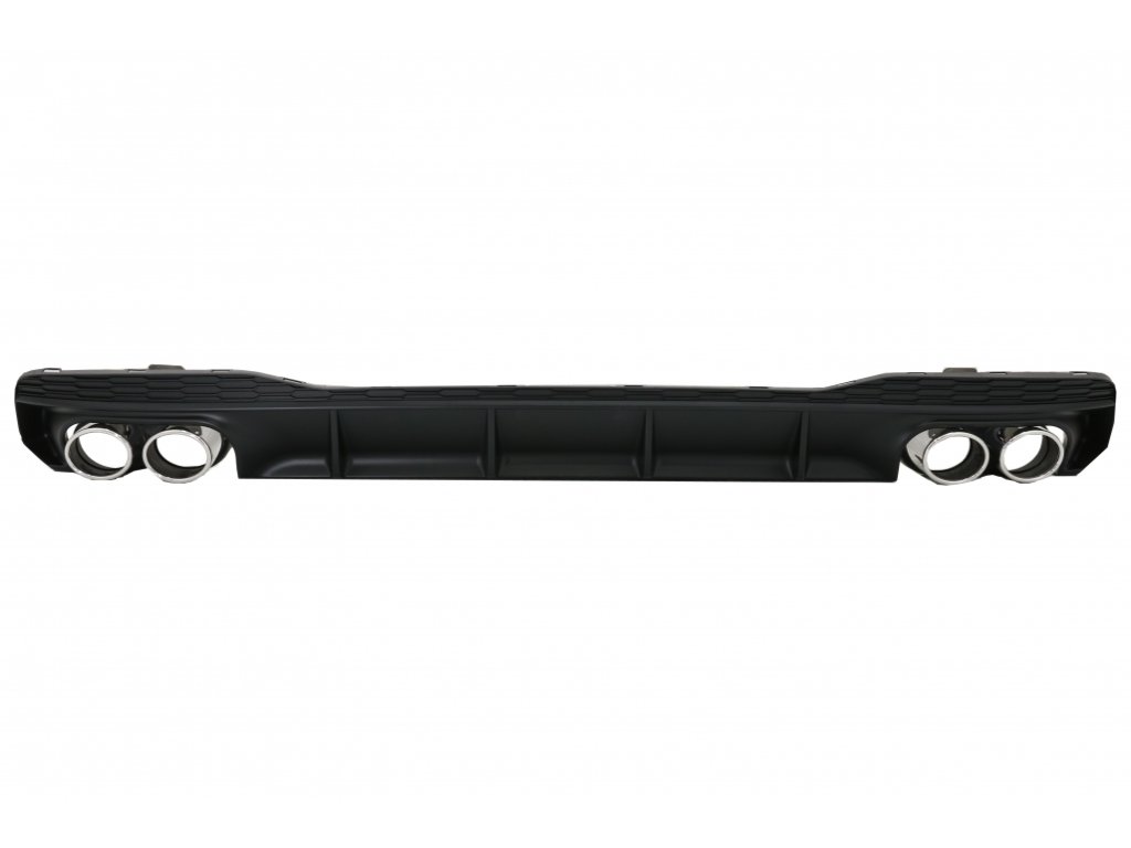 Rear Bumper Air Diffuser crafted in high-quality ABS plastic, equipped with double exhaust outlets with 304 stainless steel muffler tips.Finish: Black