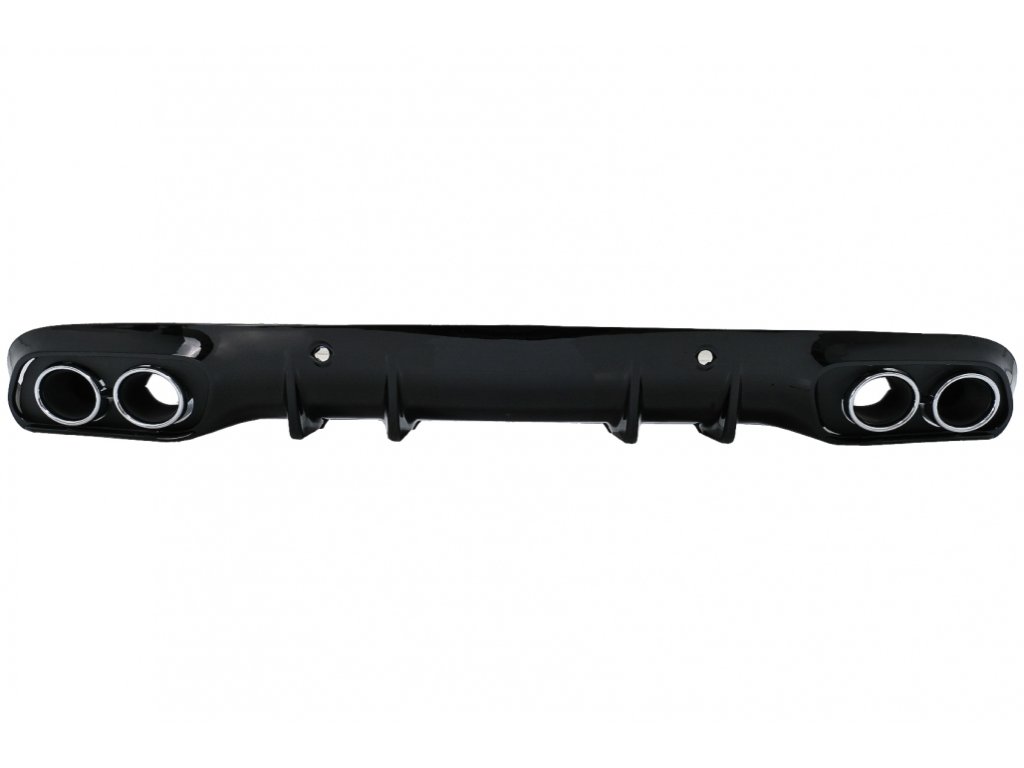 Difúzor zadného nárazníka s dvojitým vývodom s koncovkami výfuku, dizajn C43Difúzor vzduchu do zadného nárazníka vyrobený z vysoko kvalitného ABS plastu s dvojitými vývodmi pre dva tlmiče výfuku a otvory pre parkovacie ovládače parkovacieho asistenta (PDC)