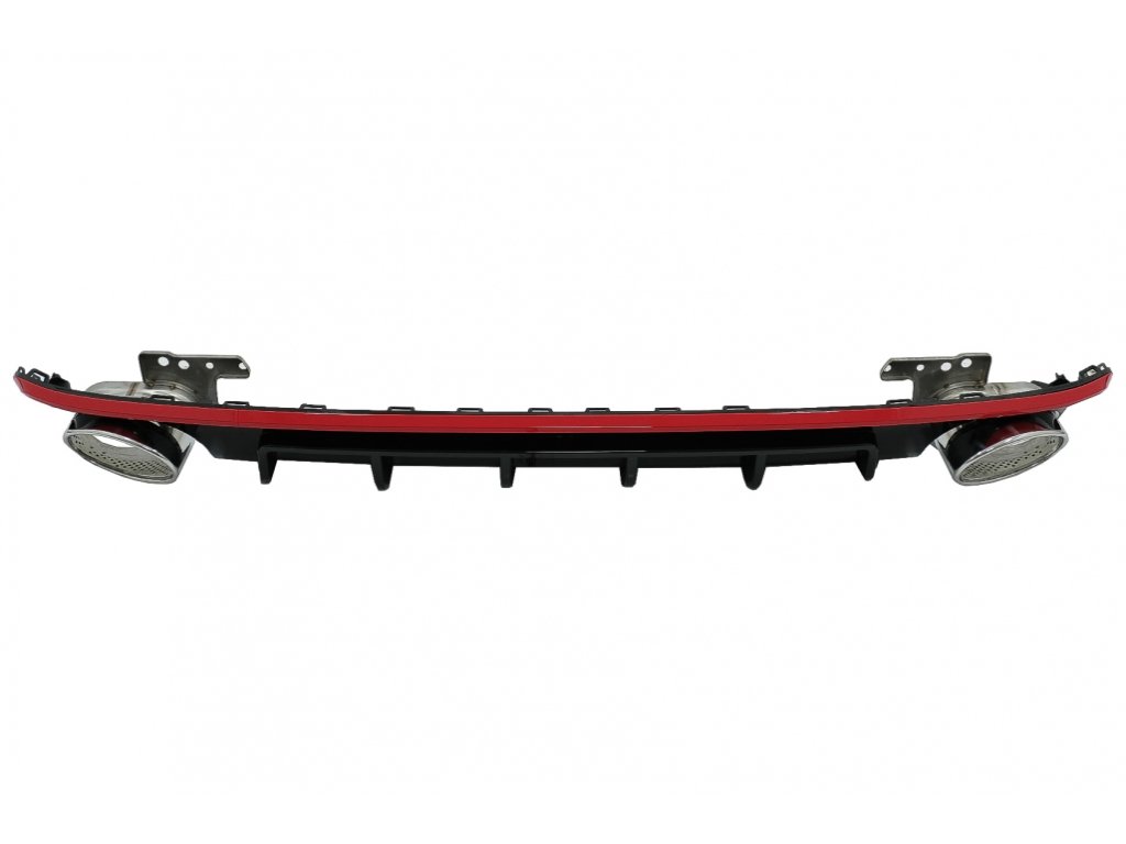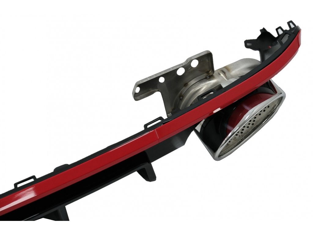 Rear Bumper Air Diffuser RS6 Design crafted in high-quality ABS plastic, equipped with double exhaust outlets with 304 stainless steel muffler tips.Finish: Red
