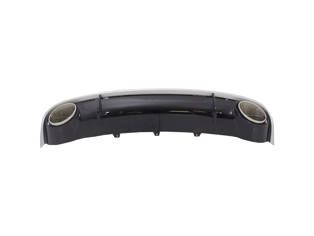Rear Bumper Air Diffuser RS4 Design crafted in high quality ABS plastic, equipped with double exhaust outlets with 304 stainless steel muffler tips.Finish: Piano Black/ Brushed Aluminum