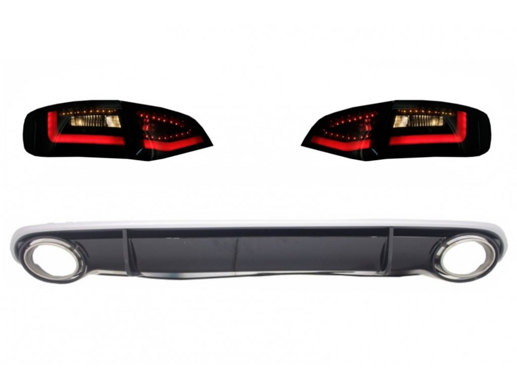 Rear Bumper Valance Diffuser & Exhaust Tips with LED Taillights Dynamic Black/Smoke suitable for AUDI A4 B8 Avant Pre Facelift (2007-2011) RS4 Design