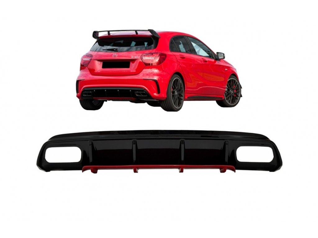 Rear Bumper Valance Diffuser suitable for Mercedes A-Class W176 Facelift (2015-2018) A45 Design Red Edition