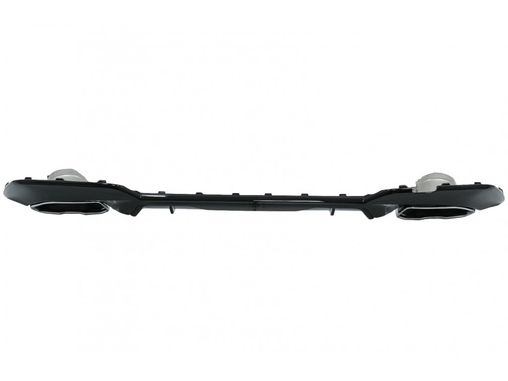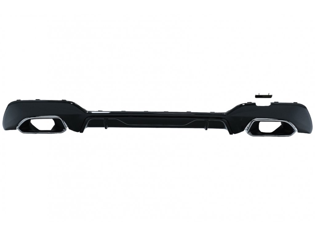 This rear bumper diffuser with exhaust tips improves your vehicle's exterior styling. An aggressive look to your Sport Package.Suitable for