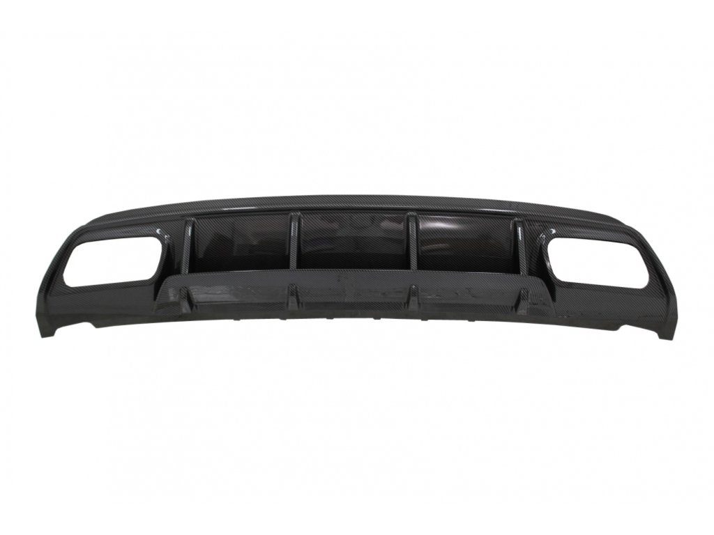 Rear Bumper Valance Diffuser with Exhaust Muffler Tips Black suitable for Mercedes W176 A-Class (2013-2018) A45 Facelift Design Carbon Look