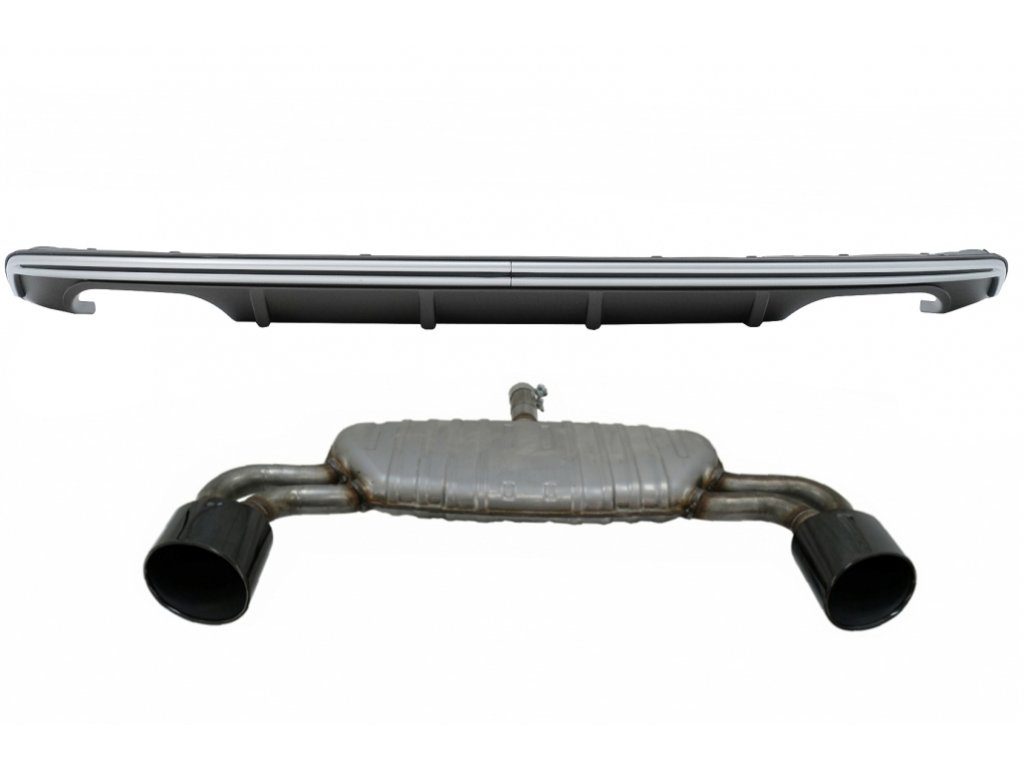 Rear Bumper Valance Diffuser with Exhaust System Black suitable for Audi A3 8V Hatchback Sportback (2012-2015) S3 Design