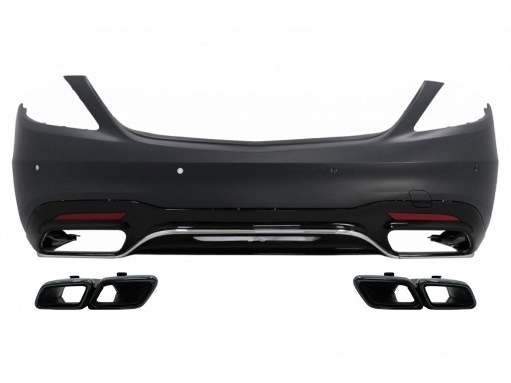 Rear Bumper with Diffuser and Exhaust Muffler Tips Black Emerald suitable for Mercedes S-Class W222 Facelift Sedan (07.2017-08.2020) S63 Design