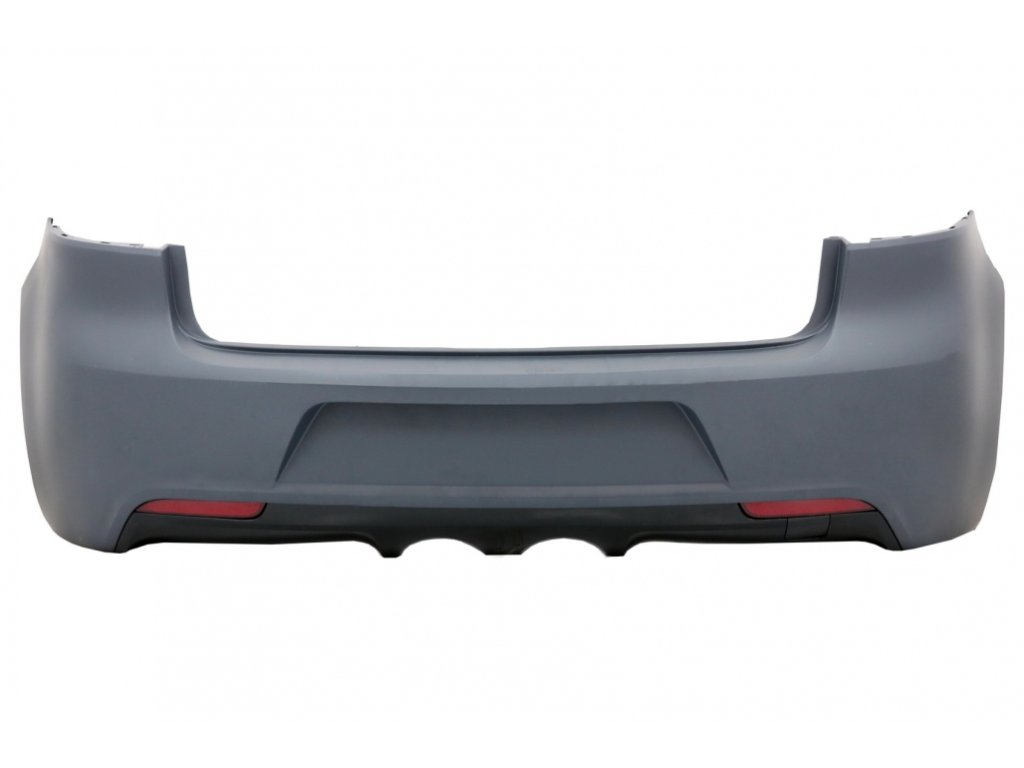 Rear bumper with diffuser and twin center exhaust mufflers, tow hook cover and red side reflectors.Rear bumper is not equipped with PDC holes.