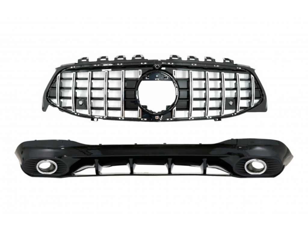 Rear Diffuser and Exhaust Tips with Front Grille suitable for Mercedes CLA X118 Shooting Brake C118 Coupe Sport Line (2019-up) CLA35 GT-R Design