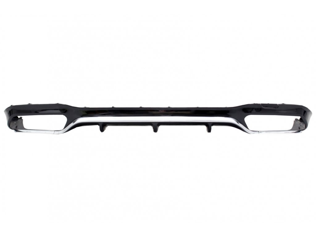 Rear bumper air diffuser E63 DesignRear diffuser E63 Design made from high-quality polypropylene equipped with chrome strips