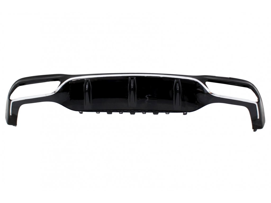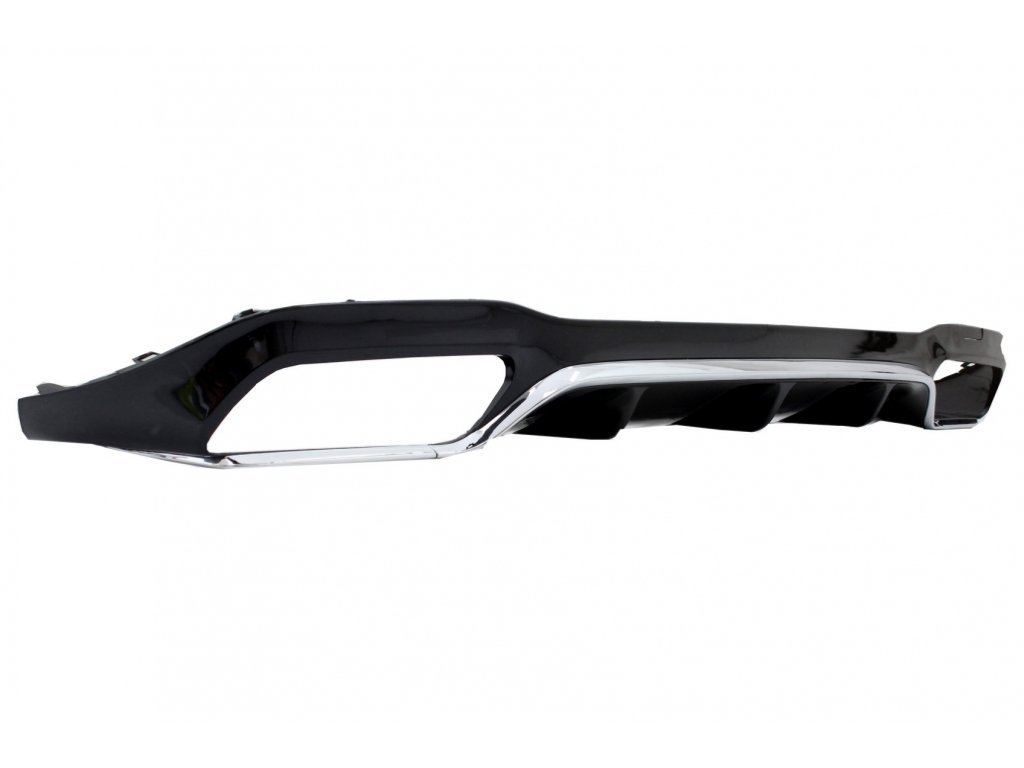 Rear bumper air diffuser E63 DesignRear diffuser E63 Design made from high-quality polypropylene equipped with chrome strips