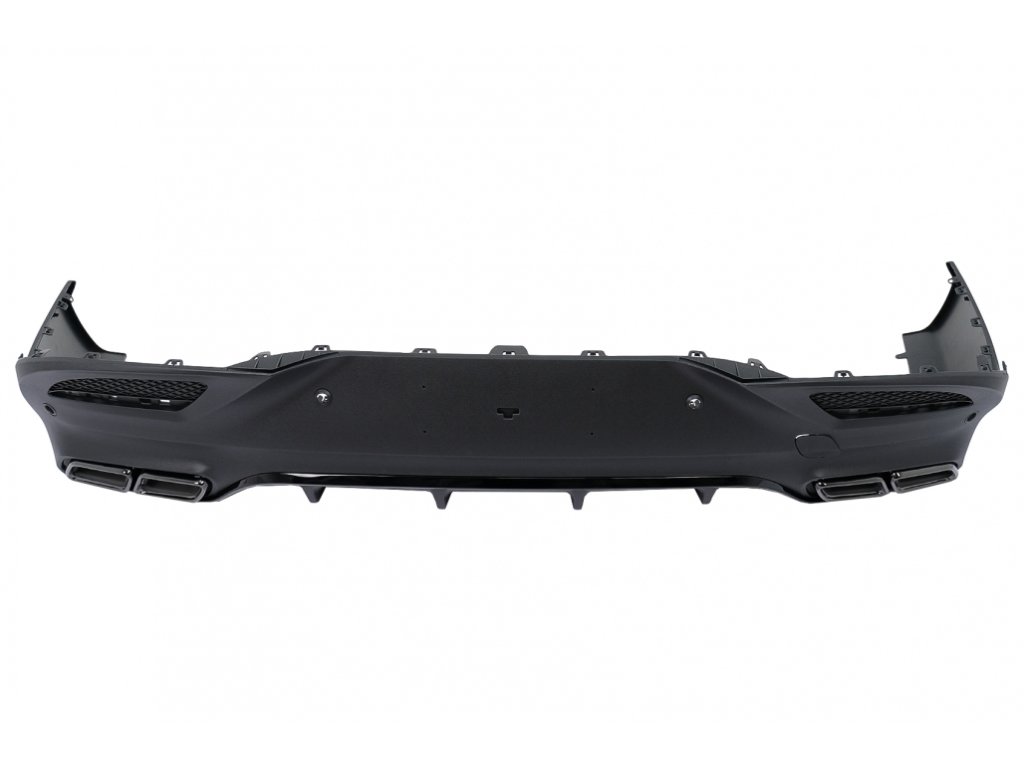 Difúzor vzduchu do zadného nárazníka, dizajn GLE63Difúzor vzduchu do zadného nárazníka vyrobený z vysoko kvalitného ABS plastu s dvojitými vývodmi pre koncovky dvojitého tlmiča výfuku a držiaky PDC